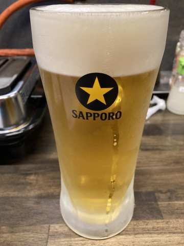 登山の前夜に焼肉屋で仲間たちと飲み会。 今一番大好きなビール、静岡麦酒を大ジョッキで頂く♪