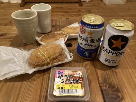 今夜は友人宅の離れでお世話になる。 静岡麦酒と黒ラベルを飲み比べて静岡麦酒の良さを友人に教える。 神奈川県民は箱根を越えないと、静岡麦酒も黒はんぺんも手に入らないのだとw