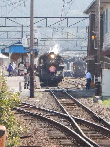 大井川鉄道の金谷駅付近を通過。 ちょうどSLが停車していた。