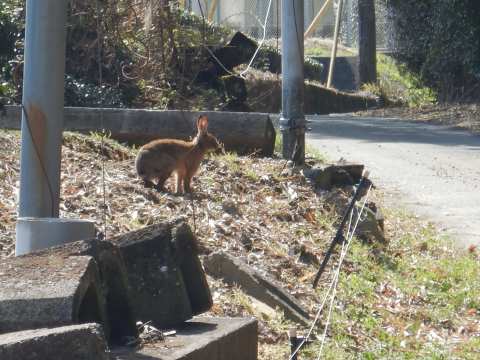 ノウサギを見かけた。 ガッチリした体格だ。