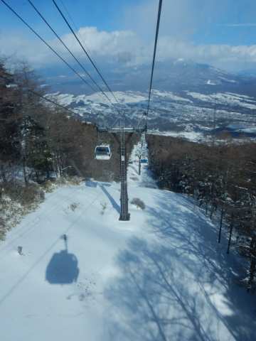 ゴンドラに乗って高度を稼ぐ。雪のスキー場に来たのはたぶん20年ぶりか。