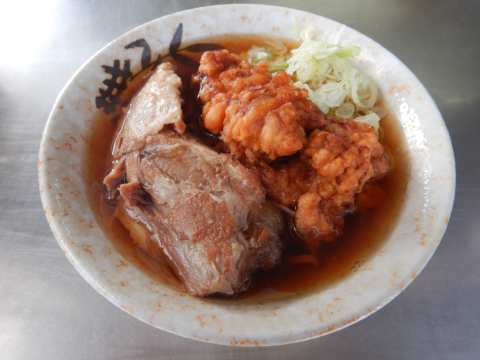 駅そばでコラーゲンチャーシューと山賊焼きをのせて食べる。