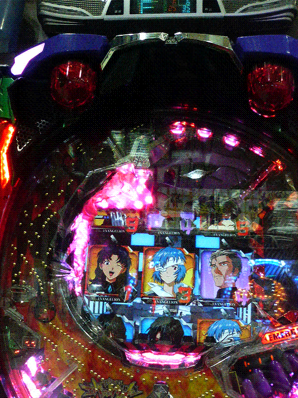 エヴァ3・・・右側に2人座ってるな とりあえず一番ヒダリ側〜 うう、左から2番目、誰かが15回かけちゃってるよ エヴァ3穴場だったのに・・・・。 ま、左端は一回も回してないのでなにかあるかなーっと・・。 1000円でヤメ エヴァ4 どーせ金あんまりないから、エヴァ4で一気にすっちゃえ あれ?この時間に7台くらい空いてる・・。 偶然か客が減ったのか・・・。 朝500回転くらいで単発キテ600回転以上放置の台GET うーん、あんまり回らん! 1000円で1回転回ったり 一気に保留2まで着いたり てか全然回らん 寒い予告でスーパーに発展したり 5分ミッション入ったり 左隣に座った人が1000円で暴走入ったりと 色々あったが (30分後) 700回転まで回し 11000円ホントに一気にすっちゃったよ とりあえずオレのあとに座った人は 『エヴァ3』のBGMだ 19日:V店 -12000 |