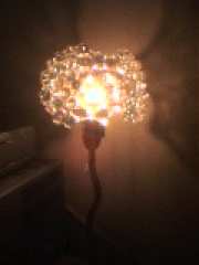 お気にGOODS第一弾。三茶の古本屋で買ったランプだよ〜。古いホテルみたいで味があるのだ。HOYAのクリスタルを使っているようだ。これをつけてまったりが楽しい♪お酒がすすんじゃうランプです☆ |