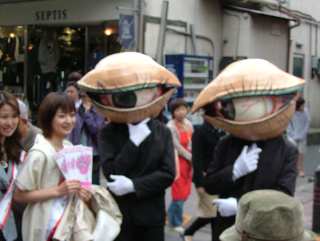 土曜日の三軒茶屋のにぎわいわスゴかったわ〜。・:*:・゜☆ で、これなんだけど目玉じゃない??なんかすっごいリアルな上に、まつげパーマくらいの勢いでまつげのカールがきれい(爆) 結局何のアピールかは不明・・・。 |